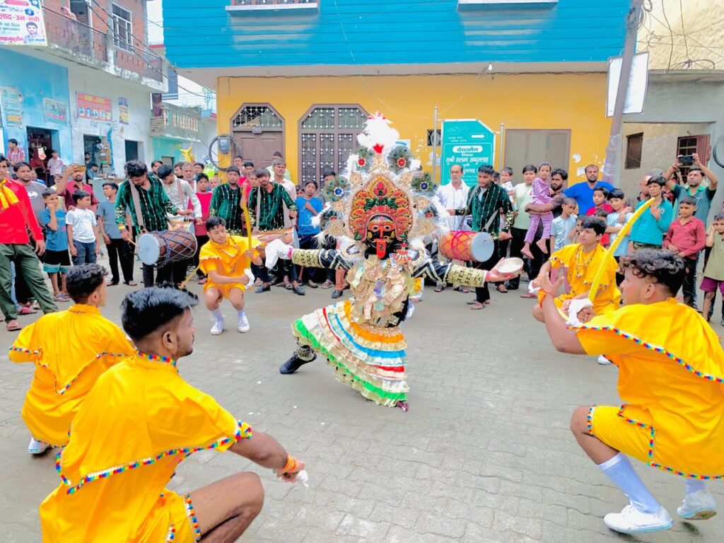 औरंगाबाद।औरंगाबाद में अष्टमी पर्व पर श्री माता महाकाली कमेटी के तत्वाधान में मंगलवार को प्राचीन नागेश्वर शिव मंदिर से बैंड बाजे के साथ महाकाली की विशाल शोभायात्रा निकाली गई।खलीफा राजाराम सैनी ने मां चामुंडा मंदिर में पूजा अर्चना संपन्न कराई।महाकाली के स्वरूप में नरेश सैनी ने तलवार चलाकर करतब दिखाए।शोभायात्रा में गणेश जी,भोले शंकर,राधा कृष्ण,मां दुर्गे ,हनुमान जी की झांकियां शामिल रही।इस मौके पर सचिन वर्मा,योगेंद्र सैनी,किशन सैनी,रंजीत सैनी,हरिशंकर गिरी,चंदू सैनी,नितिन वर्मा,मुकेश सैनी,प्रेम सैनी, आदि मौजूद रहे।