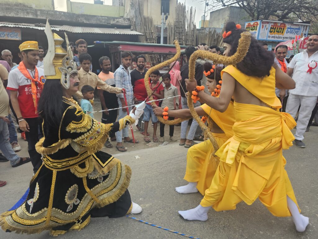 इस दौरान मेले का आयोजन हुआ। जिसमें बच्चों के साथ बड़ो ने भी जमकर खरीदारी की। नगर के प्राचीन नागेश्वर मंदिर मार्ग स्थित रावण मैदान में श्री रामलीला अभिनय मंडल की ओर से आयोजित रामलीला के कलाकारों के द्वारा मैदान पर राम- रावण युद्ध का मंचन किया गया। वही सप्तमी अष्टमी और नवमी महाकाली के तीनों काली माता के स्वरूपों ने तलवार से करतब दिखाकर मैदान में मौजूद भीड़ को मंत्र मुग्ध कर दिया इसके बाद भगवान राम ने धनुष से बाड़ छोड़कर रावण के पुतले का दहन किया। रामलीला कमेटी के अध्यक्ष योगेश सिंघल, नितिन सिंघल, पुनीत सिंघल, टीनू अग्रवाल, ध्रुव सिंघल, राजेश गोयल, मनोज गोयल, ललित शर्मा, दीपक अग्रवाल उर्फ दीनू जी, चेतन कंसल, विशाल कंसल, मौजूद रहे। वहीं थाना प्रभारी रामनरायण सिंह, कस्बा चौकी इंचार्ज नीटू मलिक, उप निरीक्षक अक्षय चौधरी, उप निरीक्षक अंकित कुमार भारी पुलिस बल के साथ मौजूद रहे।