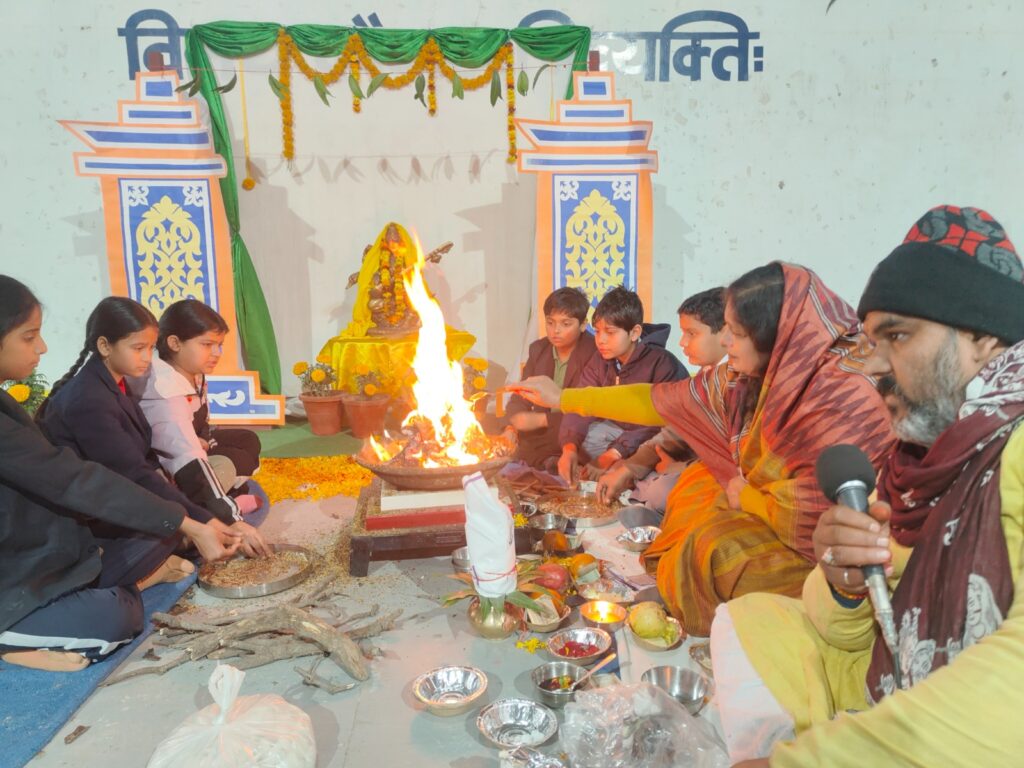 बल्कि विद्यालय के समस्त शिक्षक-शिक्षिकाओं ने भी पूर्ण निष्ठा के साथ भाग लिया। यज्ञ के दौरान पूरा वातावरण भक्तिमय हो गया।प्रधानाचार्या सुनीता सिंह ने अपने विशेष संबोधन में बसंत पंचमी के सांस्कृतिक पर प्रकाश डालते हुए कहा कि “विद्या और बुद्धि की देवी माँ सरस्वती की कृपा से ही अज्ञानता का अंधकार दूर होता है बसंत पंचमी का यह त्योहार हमें जीवन में नई ऊर्जा, सकारात्मकता और निरंतर सीखने की प्रेरणा देता है”। इस विशेष आगमन के प्रतीक के रूप में विद्यालय को पीले फूलों से सजाया गया था और इस अवसर पर सभी शिक्षक एवं शिक्षिकाओं ने पारंपरिक पीले वस्त्रों को पहनकर सांस्कृतिक महत्व को दर्शाया । कार्यक्रम के अंत में उपस्थित सभी लोगों को प्रसाद वितरित किया गया।